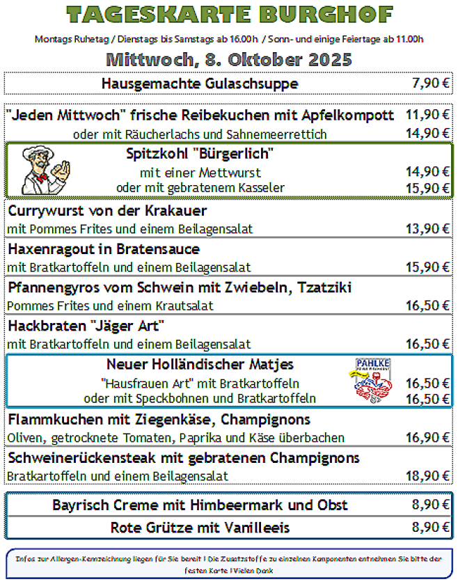Schauen Sie einfach in unsere Speisen- und die Tageskarte!